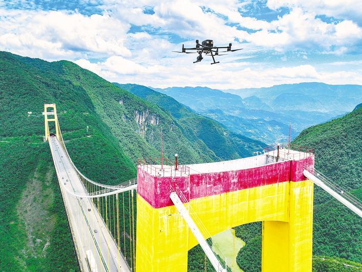无人机检查山区公路桥梁。 (照片由受访者提供)