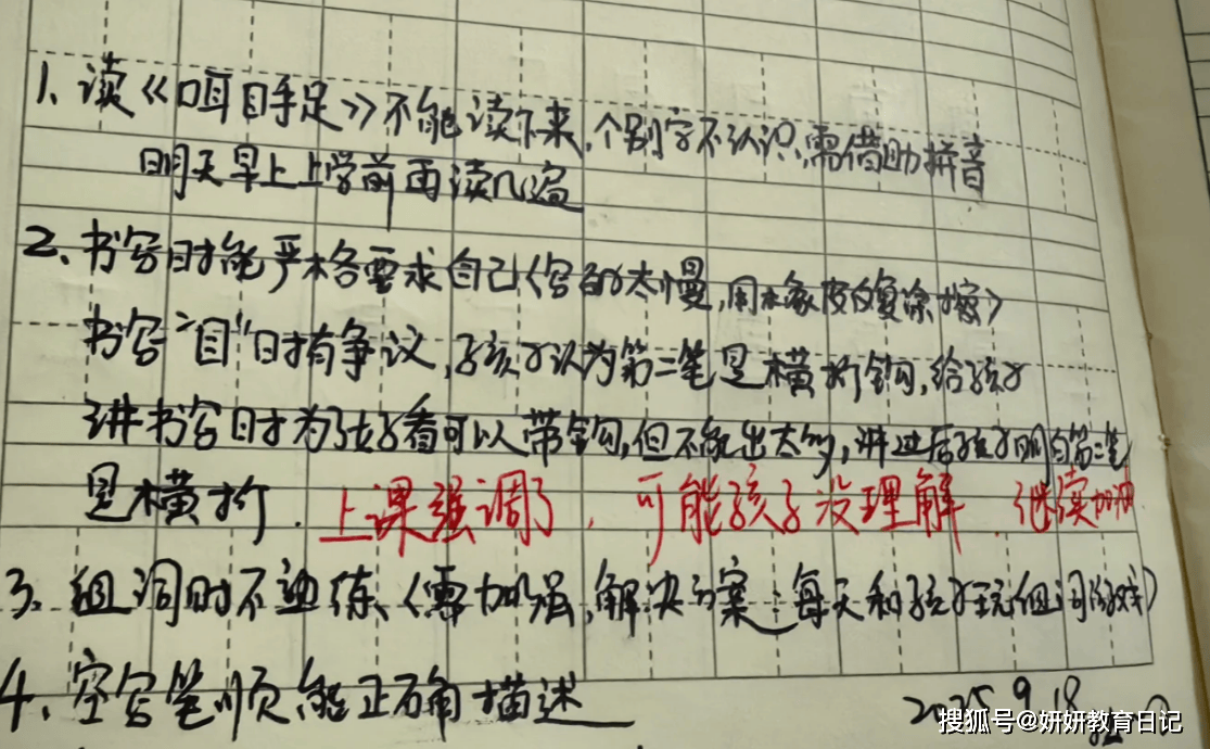 我看到这个父母会在老师离开她的一天的每一堂课上与孩子交谈,然后详细记录她的学习状态。